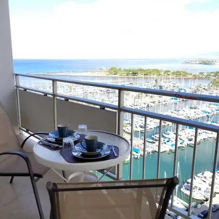 The 1-bedroom Ilikai Tower 1837 Yacht Harbor View 1Br Apartment Honolulu villa enjoys its location around 5 minutes' walk from Duke Kahanamoku Lagoon Boardwalk and overlooks the sea. Providing guests with Wi-Fi and a private parking lot, the property is 2.5 km from the university-run Waikiki Aquarium.